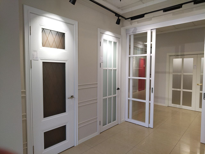 - Большой ассортимент. Мы предлагаем двери в классическом, современном и минималистичном стилях, а также изделия из различных материалов: дерева, МДФ, стали и стекла.