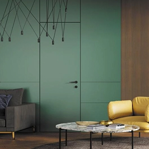Двери: радиусные, двустворчатые, скрытые, с витражным стеклом или резьбой.